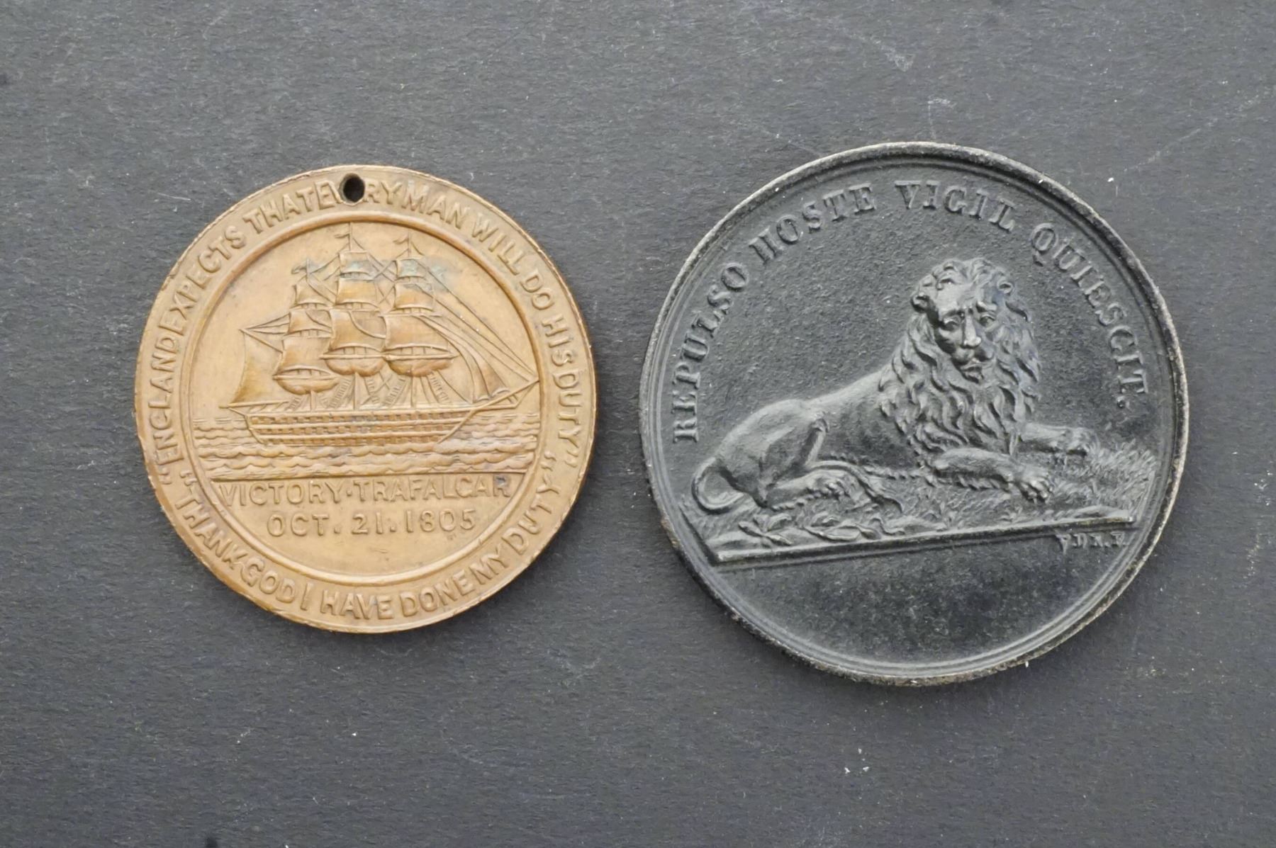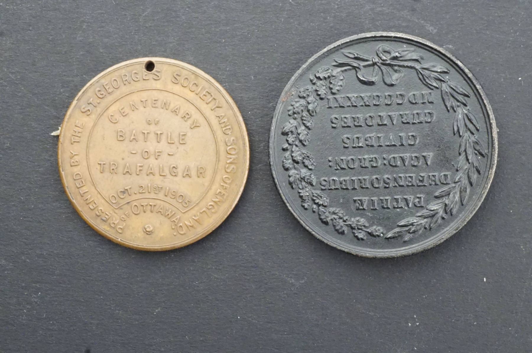 2 Pcs. Civil Protection UNC AE-35 14.6 grs edge:Plain & St. George Society 100th Anniversary of Trafalgar Pierced AE-30, 13.2 grams. Edge: Plain