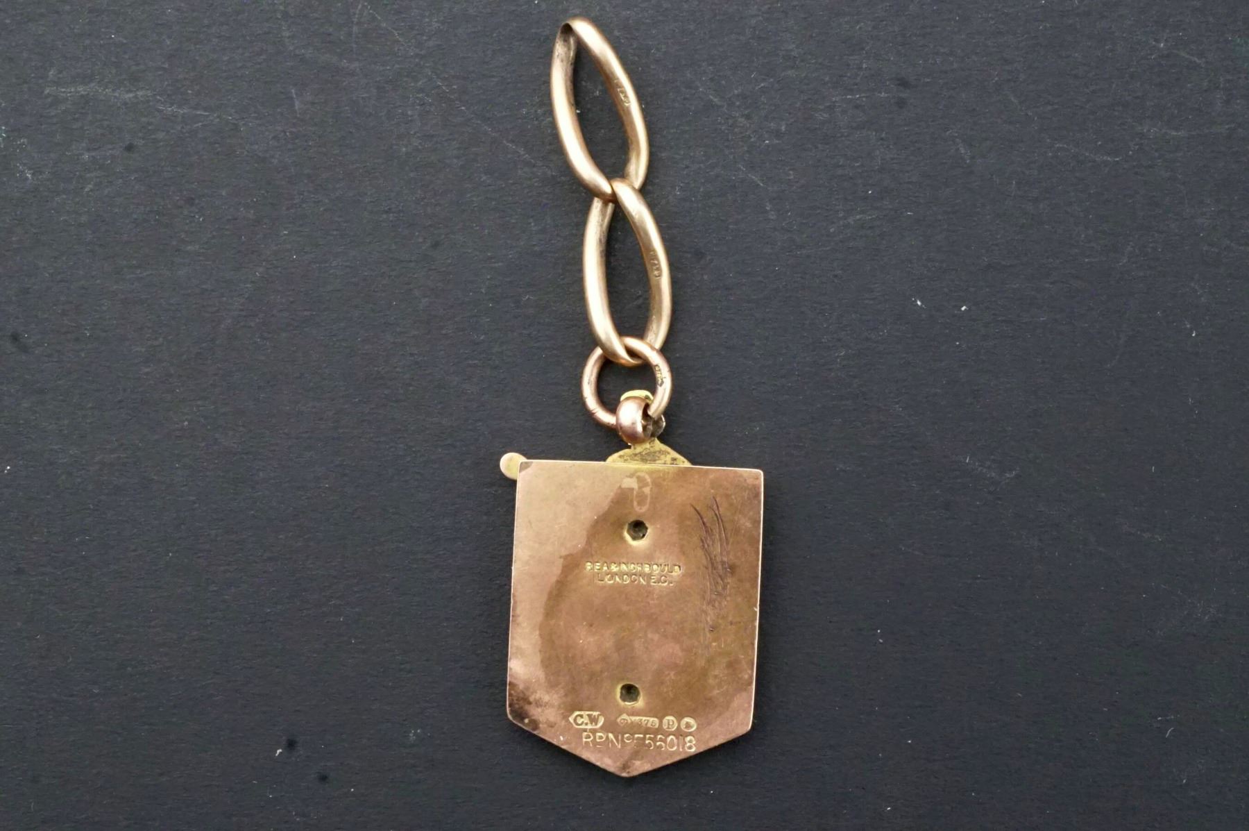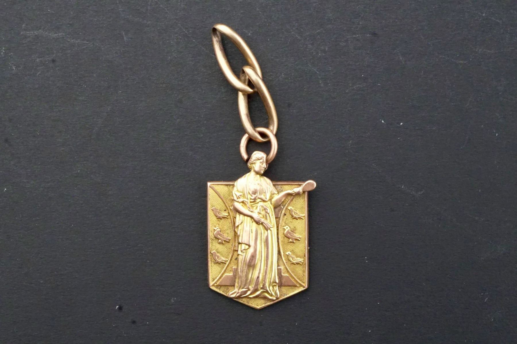 Minerva on a Sussex Martlets Shield Watch Fob by Rea & Inchbold London. EF 60 mm. 9 kt. Gold 6.4 grams