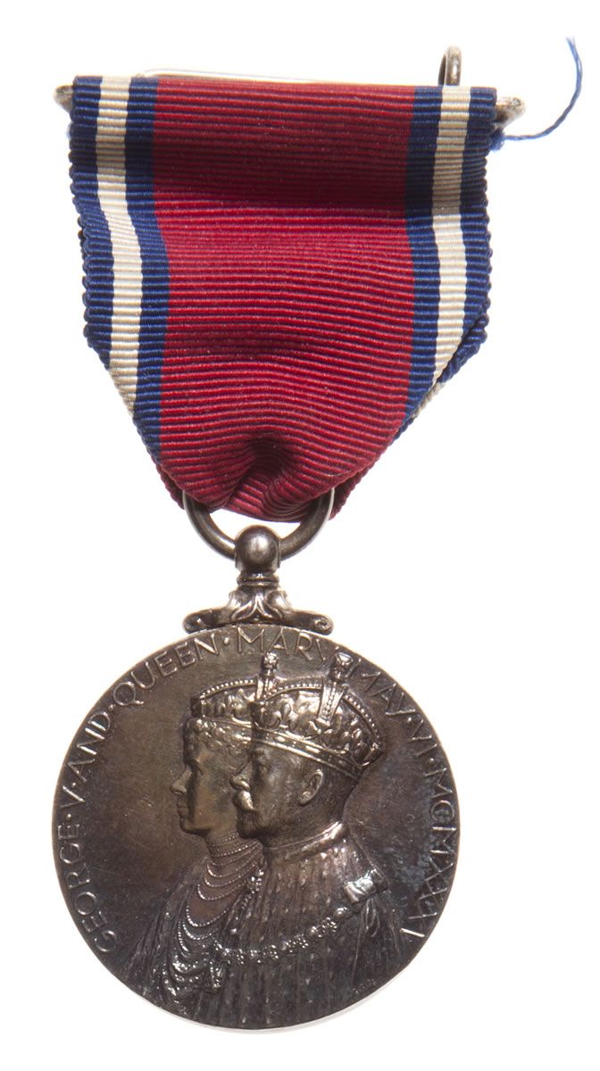 1910 Coronation medal in silver with ribbon; as issued to Police and Army in attendance. Toned. Mint State.