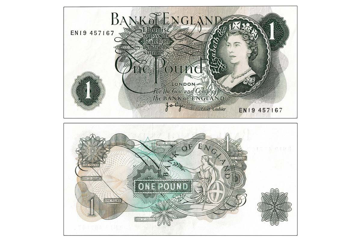 England, Great Britain, Queen Elizabeth II (c. 1952-date), 1 Pound, Bank of England series (1960-79), Obv. Young portrait of Queen Elizabeth II, Rev. Britannia, UNC, Rare.