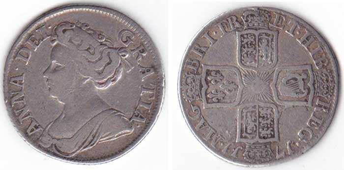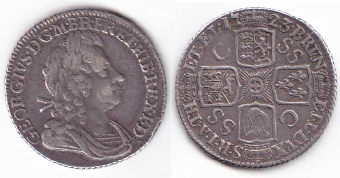 Anne, 1711 fine, George I 1723 SSC (South Sea Co.) vf, George III, 1816 vf.