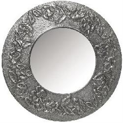 Good English Arts & Crafts mirror, wood form with hammered pewter overlay, nicely detailed decoration, original patina, 13.5”w