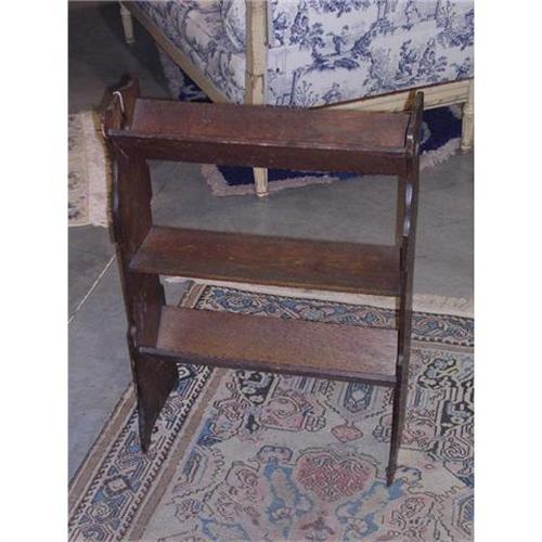 Small English dark oak book stand. The wood is chipped at one end on the top.