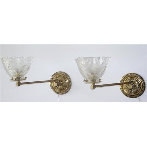 PAIR of English beautiful wall sconces , finest bronze foundry , originally gas and converted to electric.