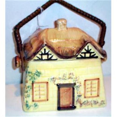 <tr><td>Title:English Cottage Shaped Biscuit Jar with Handle</td></tr>
