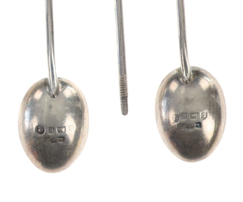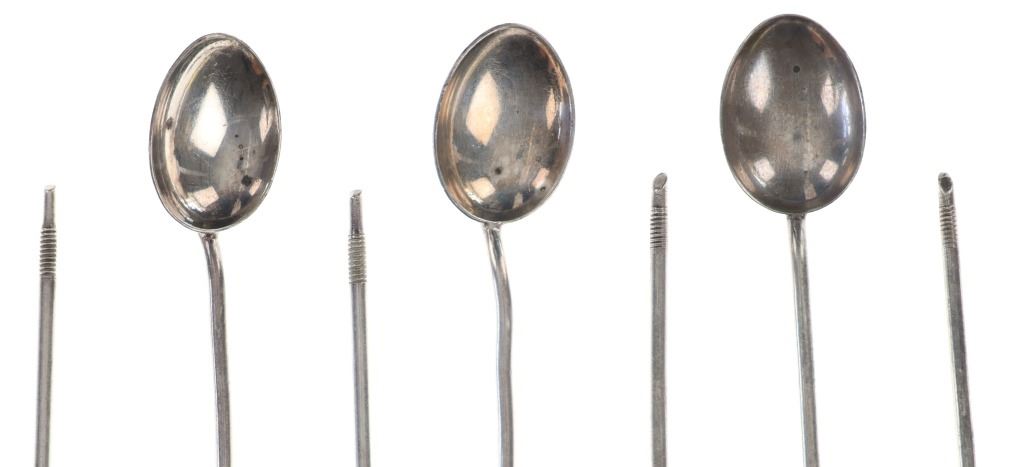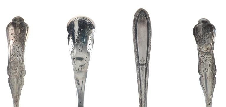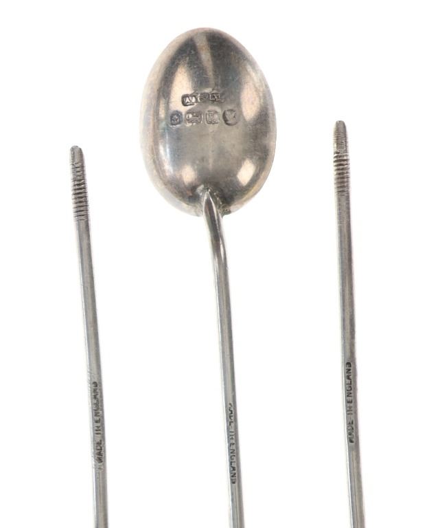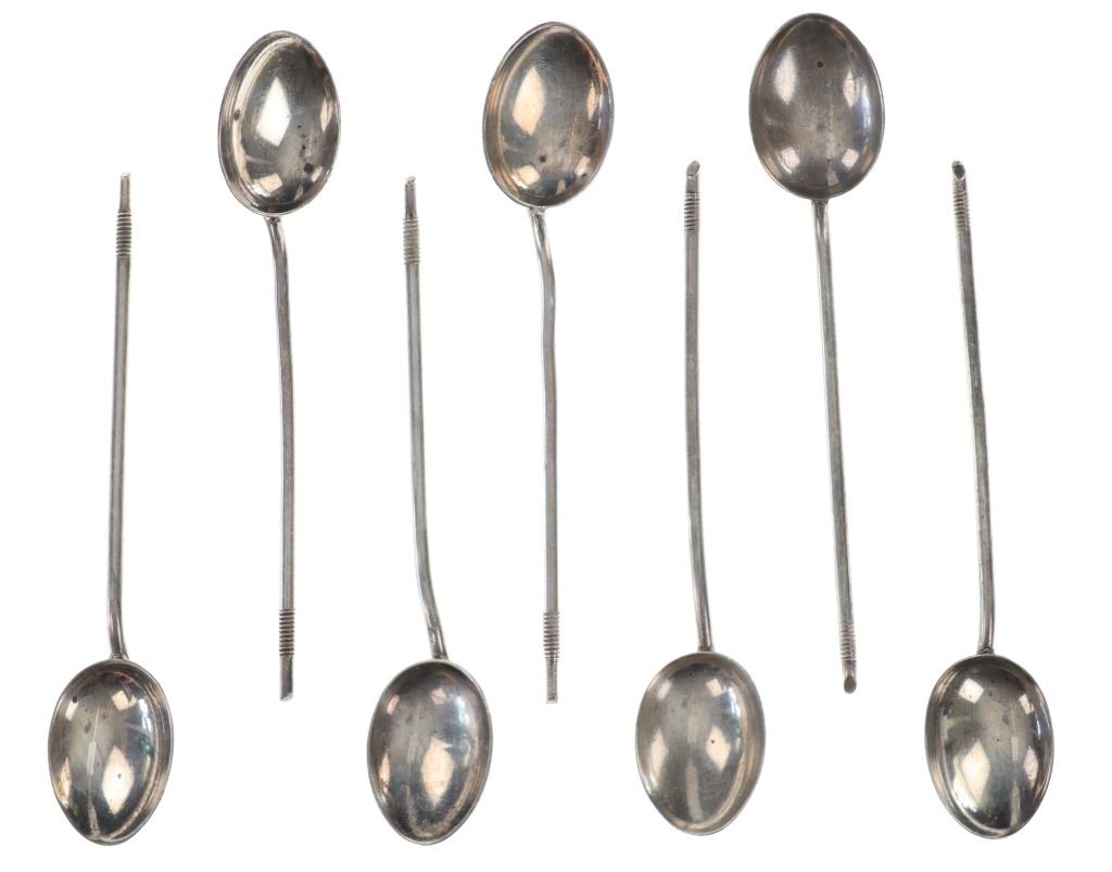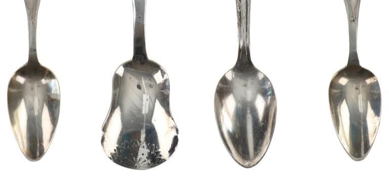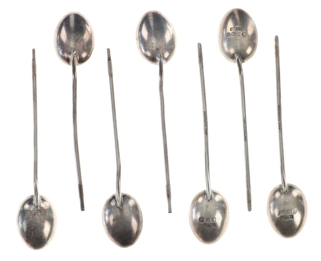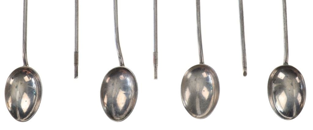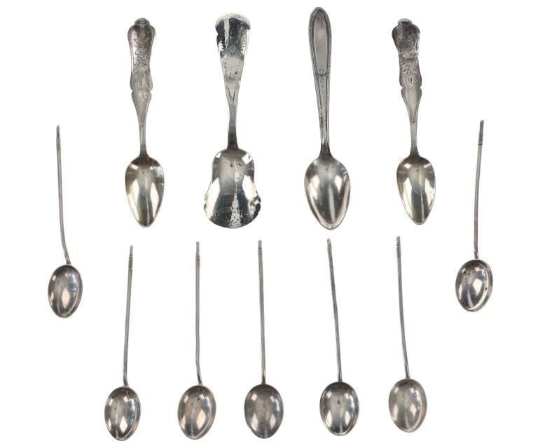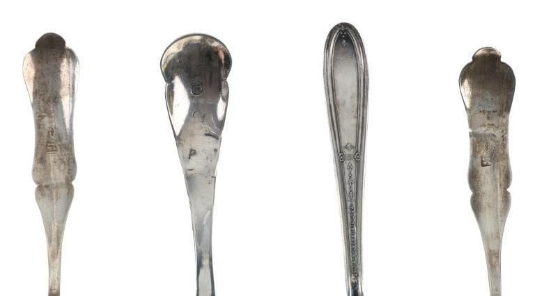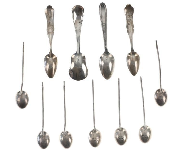 For your consideration are eleven sterling spoons from England, Holland and the United States circa early 1900s. The first in this collection is a set of seven spoons made in Birmingham by Asprey & Company circa 1934. In 1781, William Asprey founded Asprey. William initially focused on dressing cases. He purchased a business in 1859 that had a royal license to produce dressing cases for Queen Victoria. Asprey won its own royal warrant in 1862 on the strength of its prize-winning work at the London International Exhibition a few years later. The company significantly increased its initial business during the 20th century, earning additional royal appointments as jewelers, silversmiths, and goldsmiths. The shop moved to New Bond Street in the 1930s. Asprey currently has offices in London, New York, the Middle East, and Asia. The spoons are small and show no designs present, and only three show the makers mark and respective stamps. The makers mark reads, "A & Co. Ltd", while the other stamps show the Birmingham town mark, a lion passant indicating the quality of the silver, the letter "K" showing the year it was made (1934) and a Kings head showing it was made under King George V rule. On the neck of the spoons with the stampings it reads, "Made In England". The eighth spoon in this collection was made by Isabella Silver Plate in the United States circa 1910s. The spoon is small, possibly a children's spoon, and shows light designs on the outer edge of the handle while the back reads, "Isabella Silver Plate U.S.A.". The ninth spoon in this lot shows Dutch stampings on the back of the handle. The spoon features a thin neck and detailed designs on the top of the handle. The tenth spoon shows Dutch stampings as well and features a uniquely shaped bowl with a thin, curved neck showing intricate stamped designs. Where the neck meets the bowl, there is a stamped makers mark but has not been identified. The eleventh and final spoon in this collection shows Dutch stampings on the back of the neck similar to the previous two spoons. The neck shows intricate floral designs while the back shows the stampings. The spoons in this collection show good condition overall with some wear from their age and use over the years but no obvious signs of damage are present. The spoons measure from 4 1/4" L x 1 1/8" W to 3 13/16" L x 3/4" W. The collective weight of the spoons is 71.5 grams.