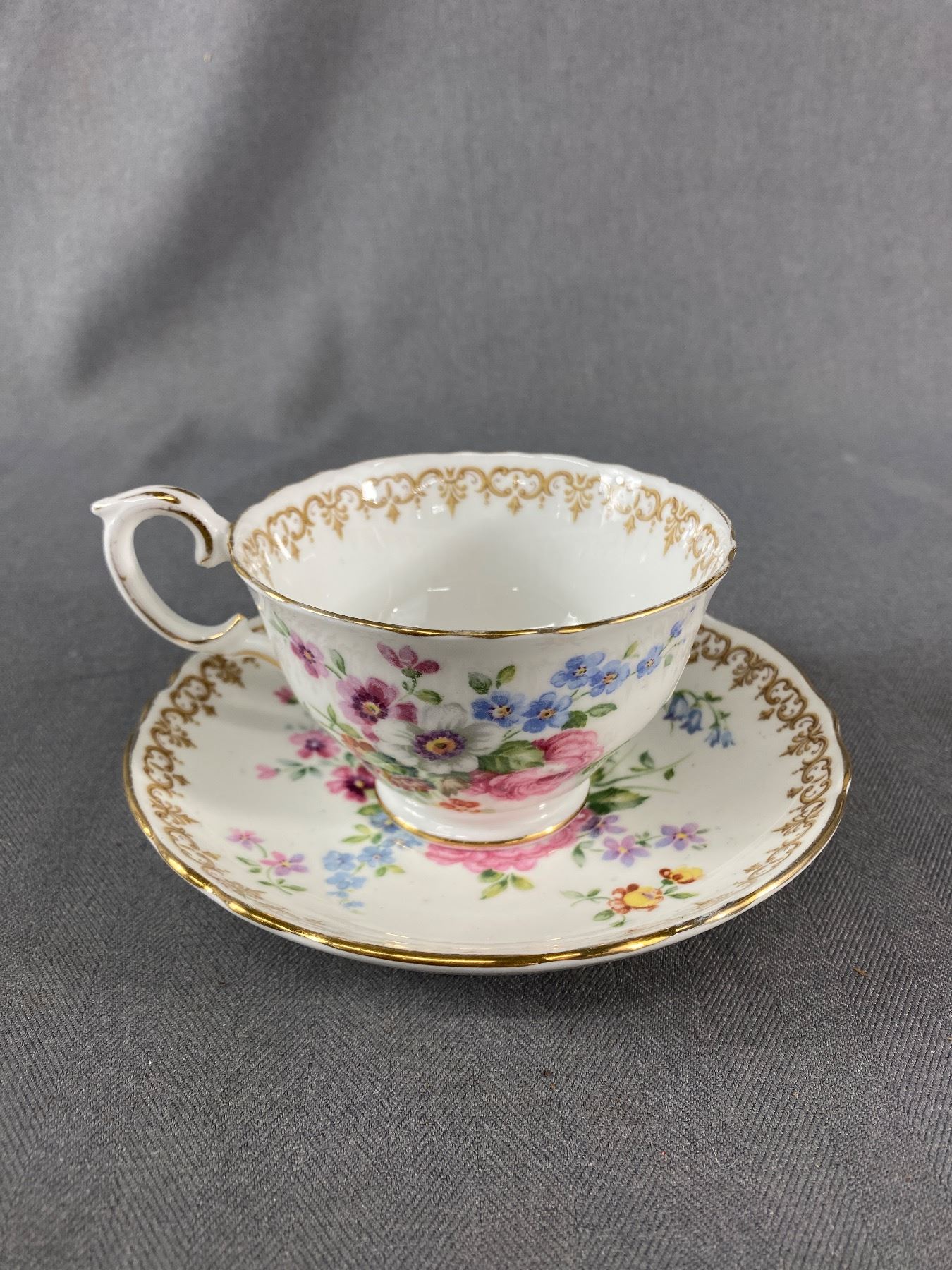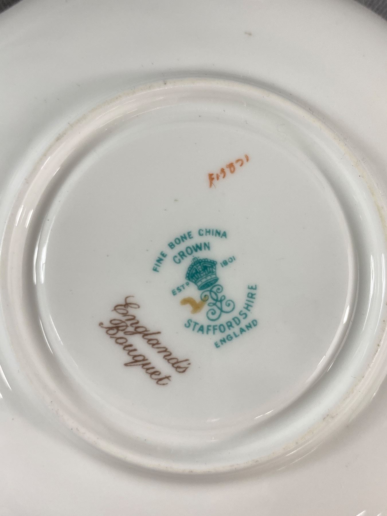 English Fine Bone China Crown Staffordshire Cup/Saucer Englands Bouquet Design/Pattern Excellent Condition