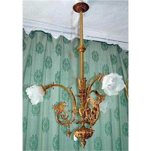 <tr><td>Title:English Gas converted bronze chandelier 3L</td></tr>