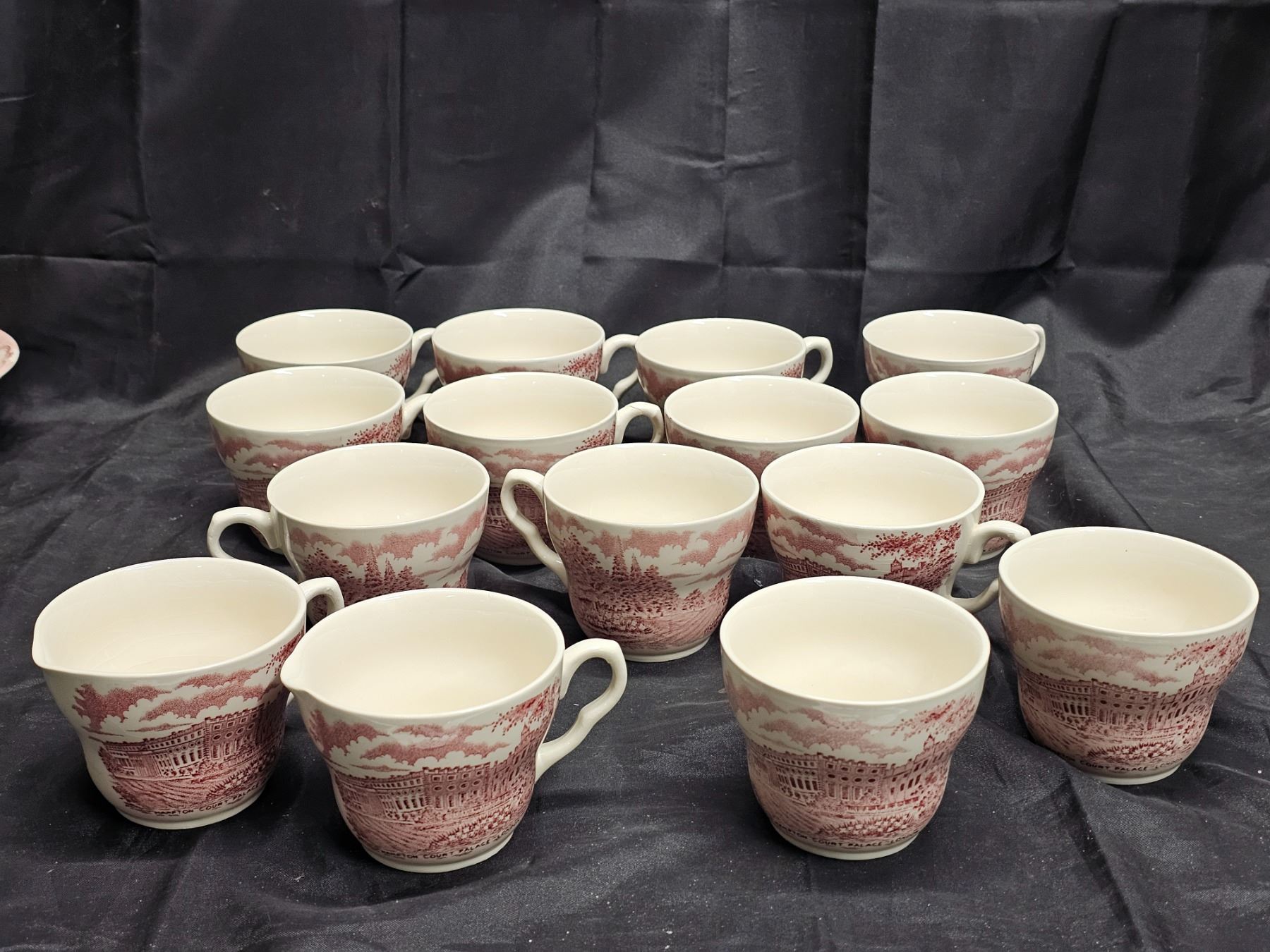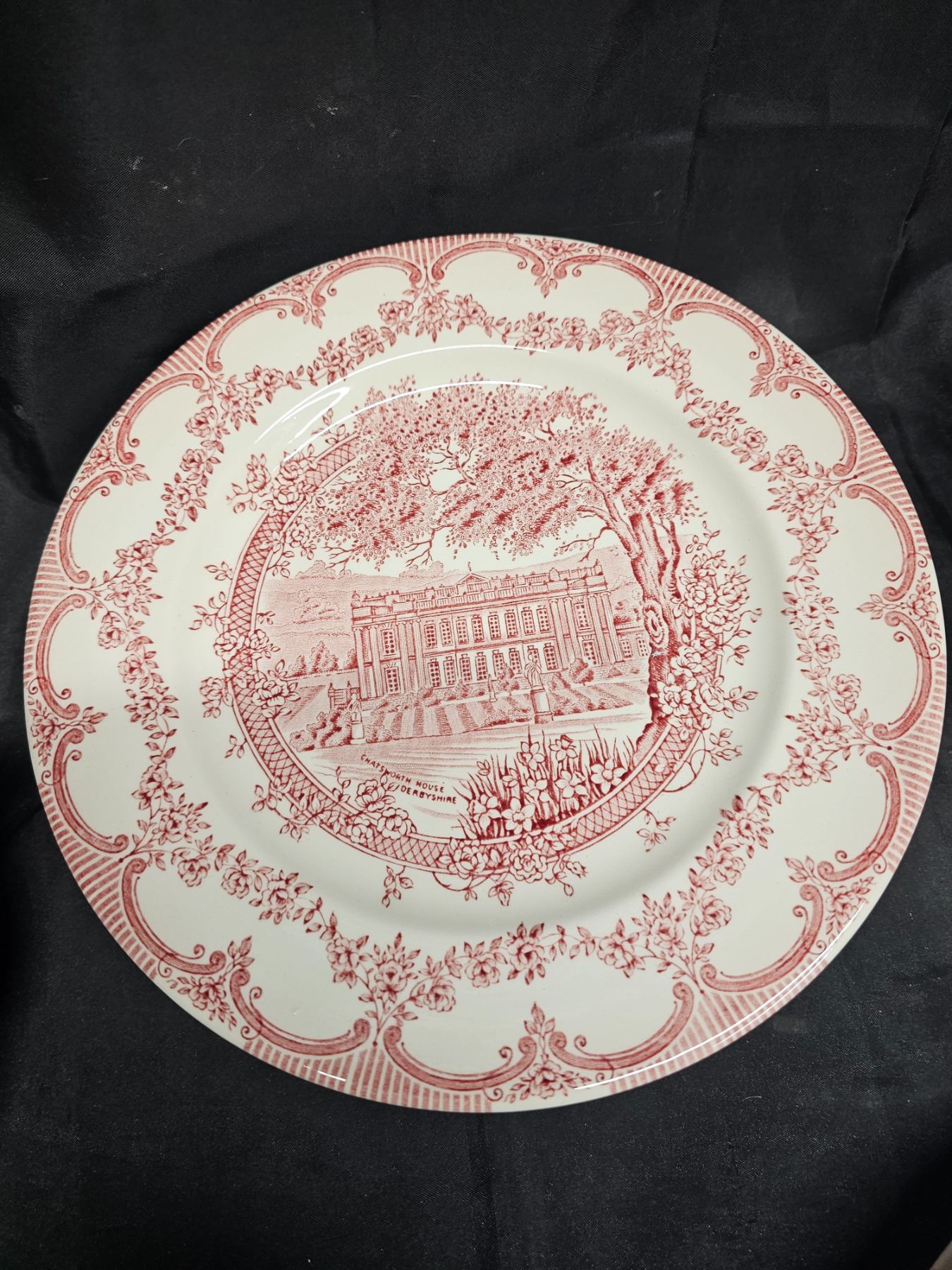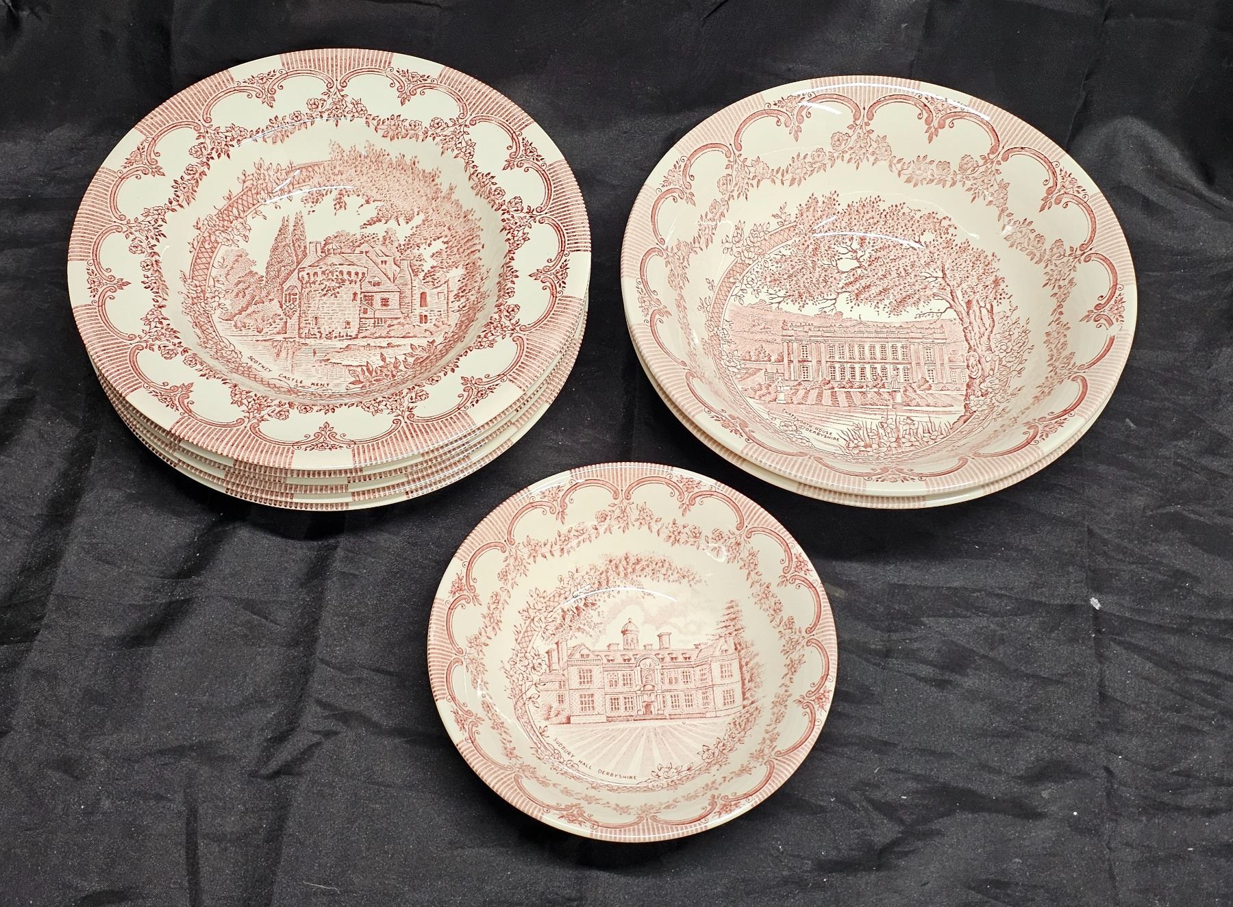 English Ironstone (England) Dishware Set, Red. Featuring Prominent Locations.