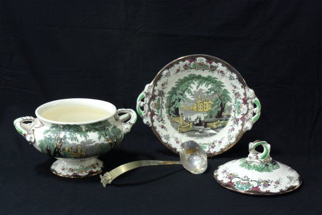 With underplate & silver plate ladle. Repair to cover handle. Please read our terms of sale.