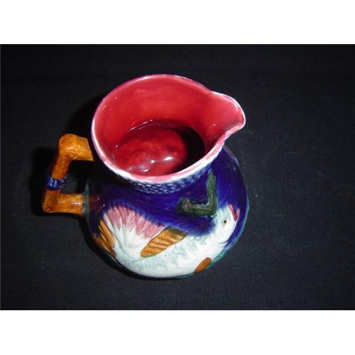 Circa. 1900 Signed Shorter, England. In mint condition </td></tr><tr> <td> </td></tr><tr> <td>Reference #: JBDY97</td></tr><tr><td>Condition:Pristine</td></tr><tr><td>Year:1900</td></tr><tr><td>Country:England</td></tr><tr><td>Height:4.50</td></tr><tr><td>Depth:5.0</td></tr><tr><td>Width:5.50</td></tr><tr><td>Title:English Majolica Small Fish Pitcher</td></tr><tr><td>Type:Majolica</td></tr><tr><td>Location:New York USA</td></tr></table>