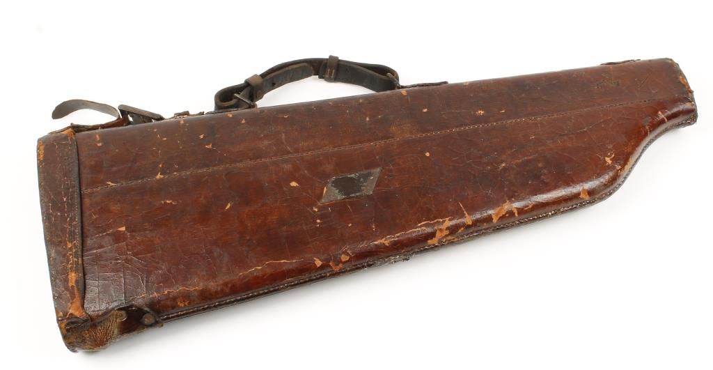 Circa 1880-1910, brown leather which has been lacquered, condition is overall fair appears to been well loved.
