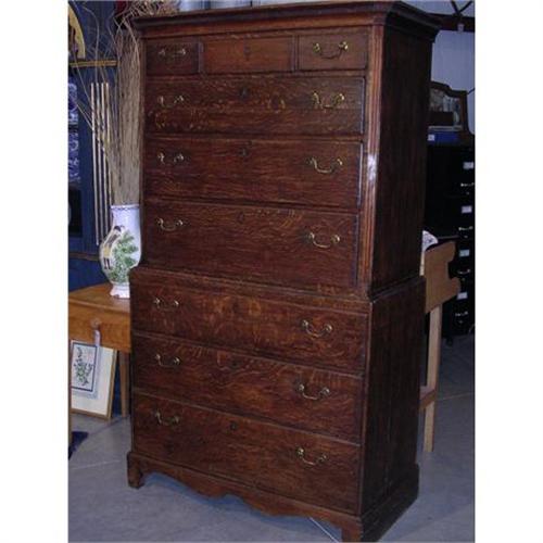 English oak chest on chest with nine drawers. The highboy is beautiful!