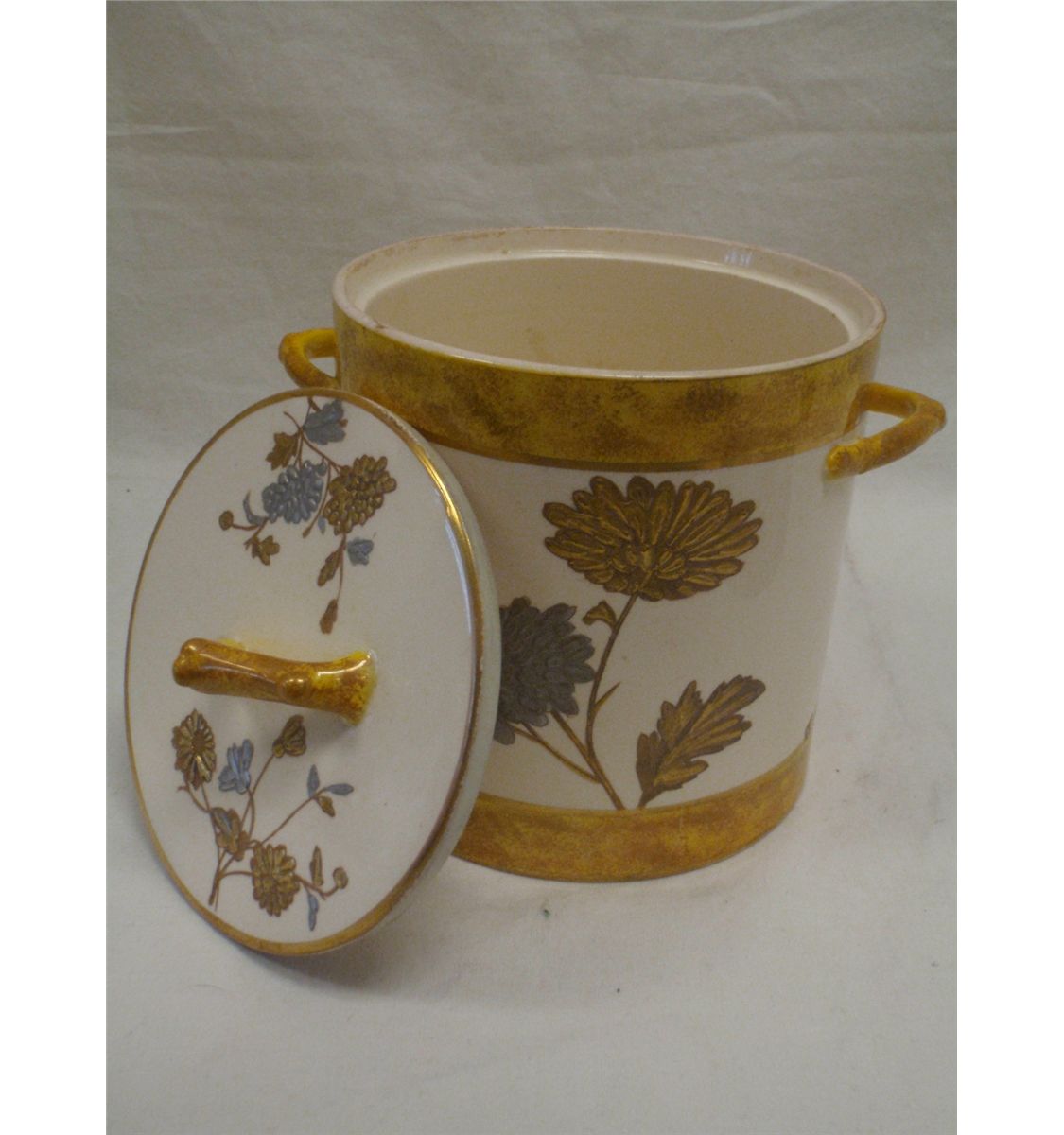 English pottery transfer bowl and hand painted English pottery buscuit jar, 1920's Measurements: Jar = 4" Diameter x 5" Tall. -- Bowl = 6" Diameter x 3" Tall - Shipping charge are for the United States. The shipping on this lot is $20.00. Outside the United States there will be additional shipping fees.