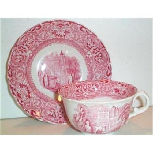 <tr><td>Title:English Red Buda Transferware Cup and Saucer</td></tr>