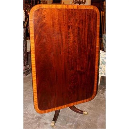 This English Regency Breakfast Tilt-top Table is in Excellent Overall Condition,c, early 1800's. Featuring Light Mahogany Banded Edges with Rich Mahogany Overall, Brass Feet and original hardware in place to allow the table to stand. Measuring 52"W x 37"D x 29"H, allowing for seating of 4-6, 60"H when upright, . Please view and zoom all pictures, serious inquiries are welcome!