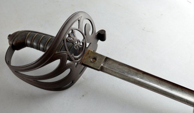 English Rifle Regiment officer's sword, mid/late 19th century, 1845 pattern, supplied R. S. Blades, Hounslow, with shagreen and wire bound grip, steel blade and scabbard, 40" long