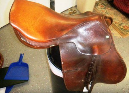 English saddle marked: Prix des Nations, Spring Seat, Crosby, England. Spring Seat, Crosby England . Very good condition, but needs a cinch. Shipping $30.00