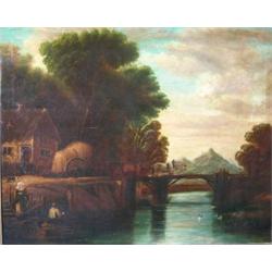 English School (19th Century) A Haycart with Horses crossing a River Bridge oil on canvas, 62 x 75cm £300-400