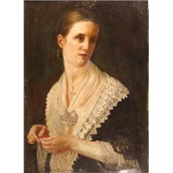 English School Late 19th Century, half length portrait of a lady, wearing a lace shawl, oil on canvas, 69 x 50 cm See illustration £200 - 250