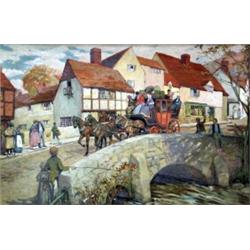 English School (c.1920), - English School (c.1920), Dickensian Coaching Scene, artists board, 12...