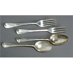 English Silver Assembled Part Flat Table Service, Various Makers, Various Dates, Mostly Early...