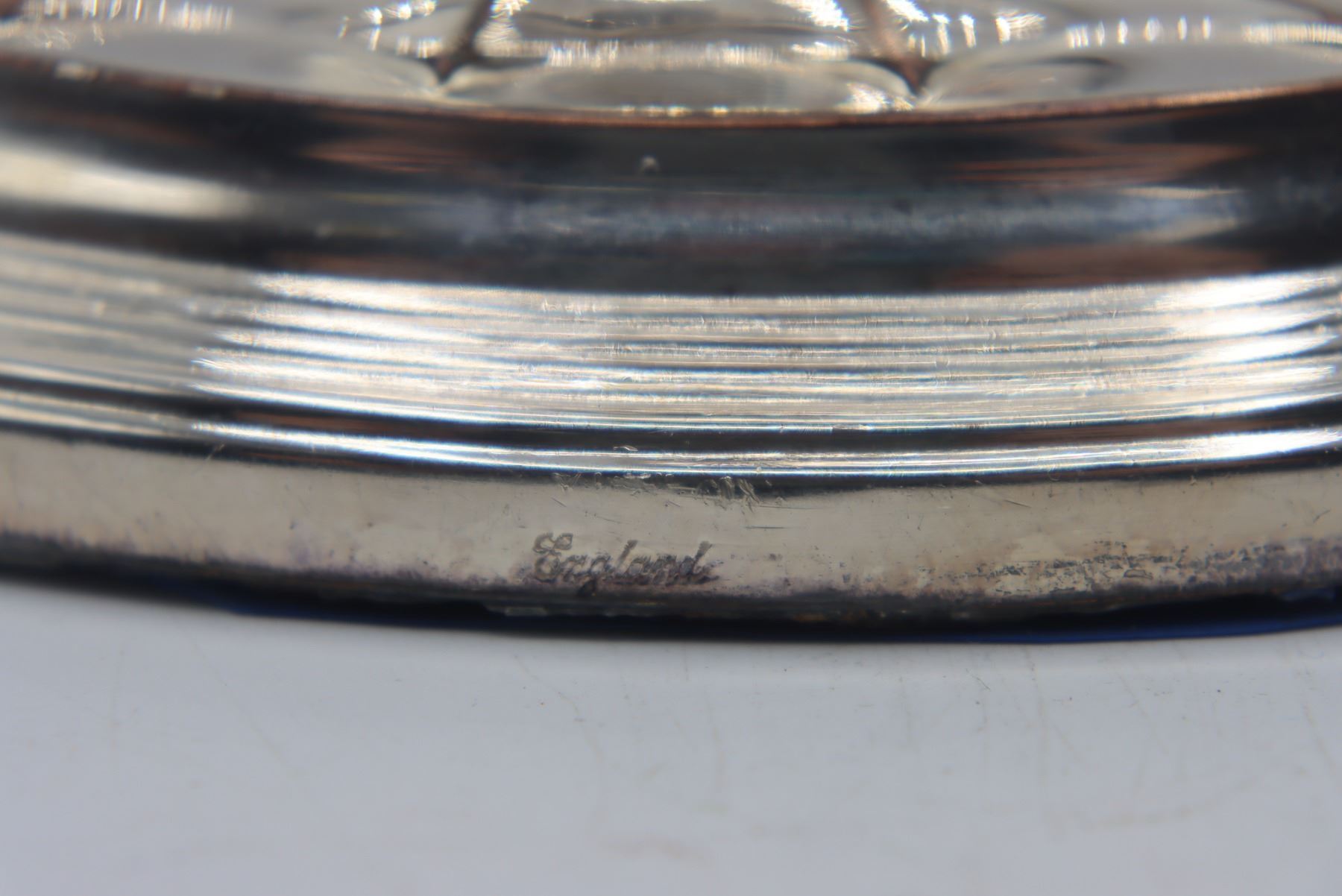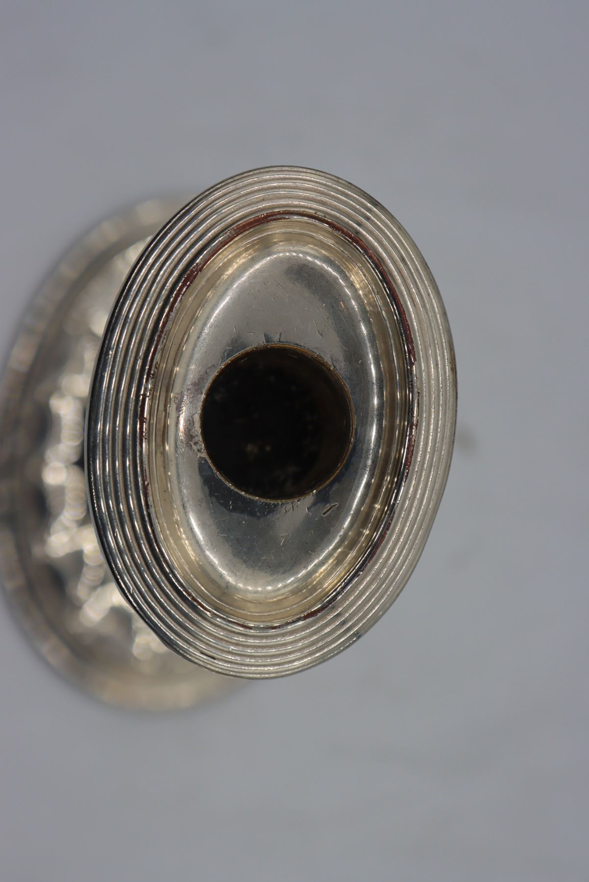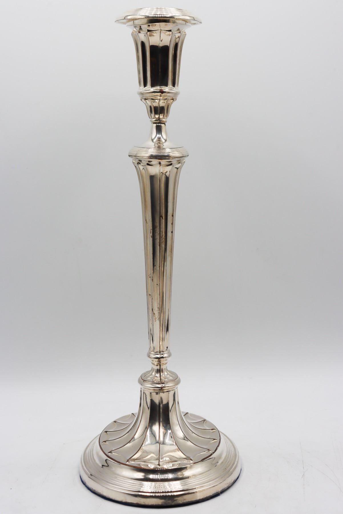 "England" on the rim. Pair of silver plate candlesticks. Size: 12 x 6 x 4 1/4 in.