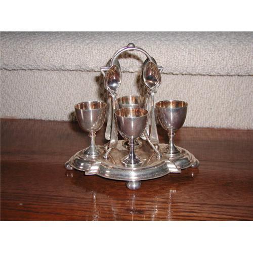 <tr><td>Title:English Silverplate Egg Caddy</td></tr>