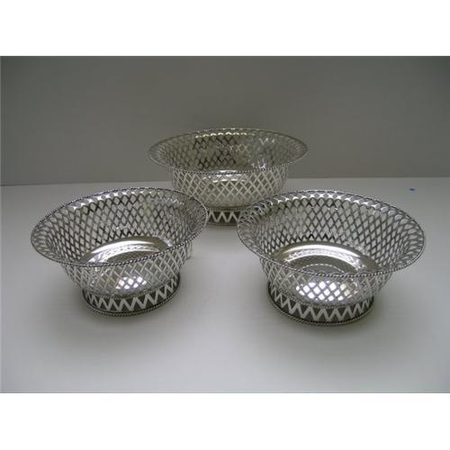 Beauitful set of Three Pierced English sterling silver baskets in excellent condition. The largest