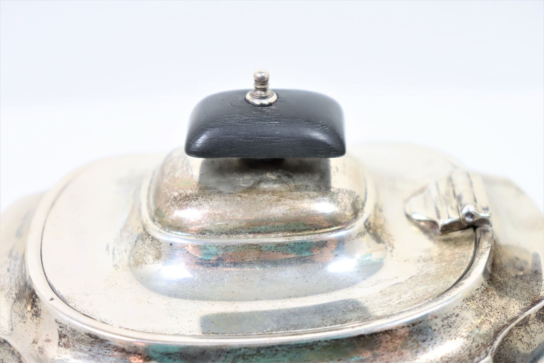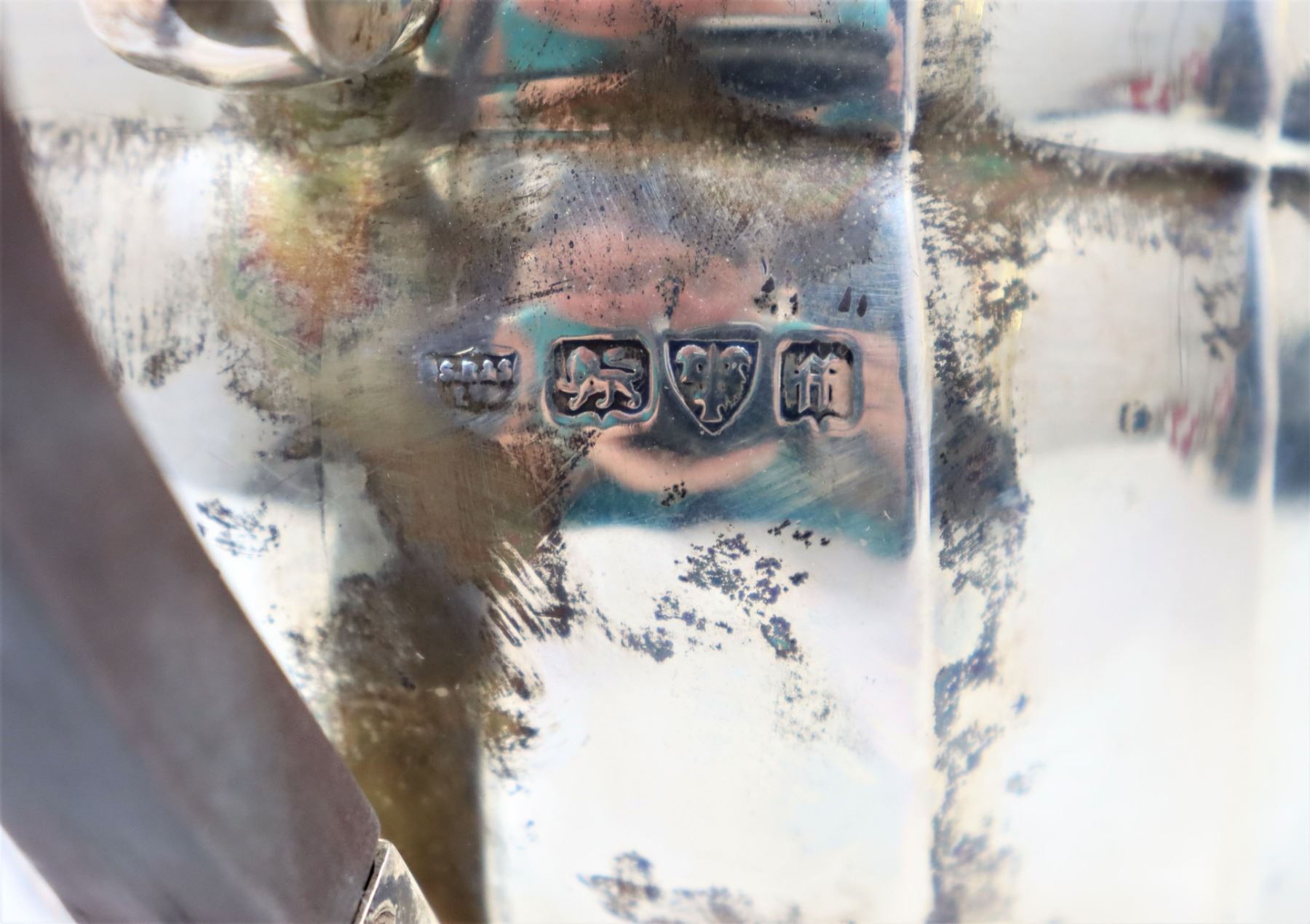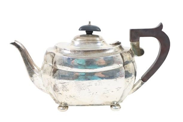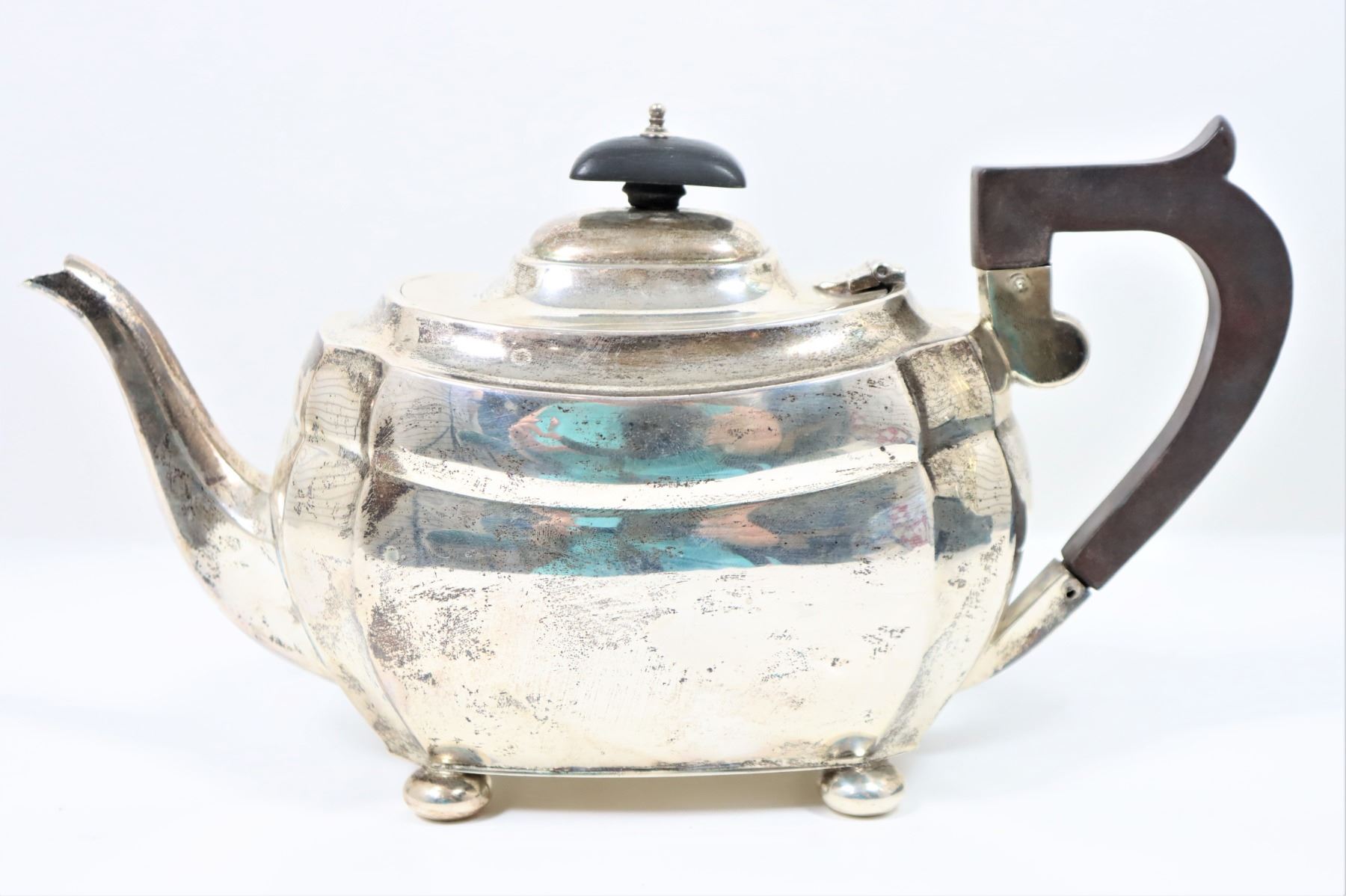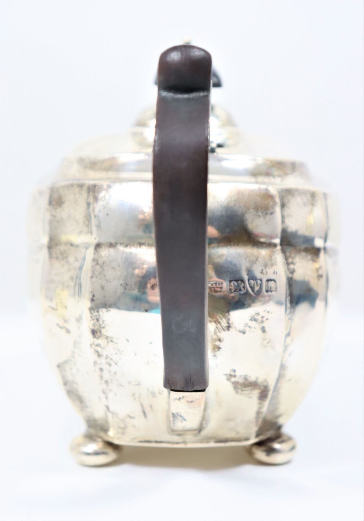 This is a beautiful English sterling silver teapot on bun feet. Made in Chester, England.