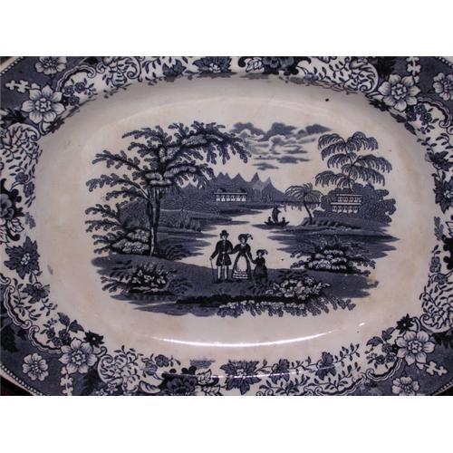 English dark blue transferware oval platter. The price that is shown is for one platter. We do have two platters available in our inventory.