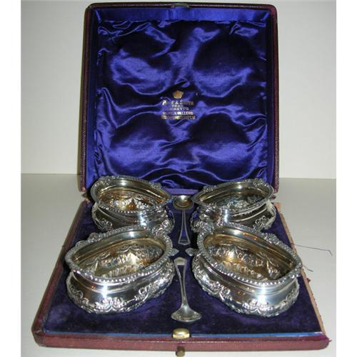 n absolutely fabulous and beautifully decorated of quality open salts, and unusually retain the four original spoons with matching hallmarks.