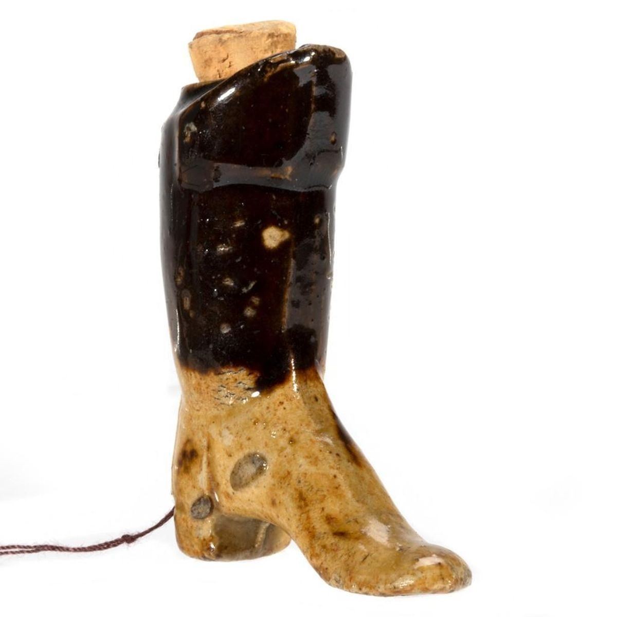 Snuff box in the form of a boot. 1 3/4in. H. Condition: Good for age and use.