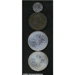 <B>English and Scottish Ensemble, </B></I>Great Britain Penny 1797, brown XF, Trade Dollar 1930 (2) BU and AU-UNC, and Scotland Silver Penny of Alexander III, second coinage, AVF, lightly porous with reverse slightly tooled. 4 coins <BR><BR><B>Important notice:</B> Heritage usually auctions material at the rate of 200-250 lots per hour. On some occasions eBay Live bid software or the Internet may not be able to keep up with the pace of the auction. We recommend placing a realistic absentee bid now as insurance to avoid disappointment. Occasionally the auctioneer may eliminate or reject an eBay Live bid, and the auctioneer may also reopen a lot after the close of the eBay live bidding (usually because we missed an audience bid), and may reject your bid even if it shows you as the winning bidder. By bidding via eBay Live, you agree that Heritage may award the lot to another bidder at its sole discretion under the circumstances described above or any other reasonable circumstances. Since eBay bids are not shown to us until we open the lot on the floor, we treat those bids just like floor bids. In most cases the floor responds before the eBay bid is presented to us, due to Internet lag time, so for consistency we have made it a policy that floor bids are always considered first over tie eBay live bids. Also please note that all Heritage lots purchased through eBay Live carry a 20% Buyer's Premium. Please make sure you read the Terms and Conditions before you bid.