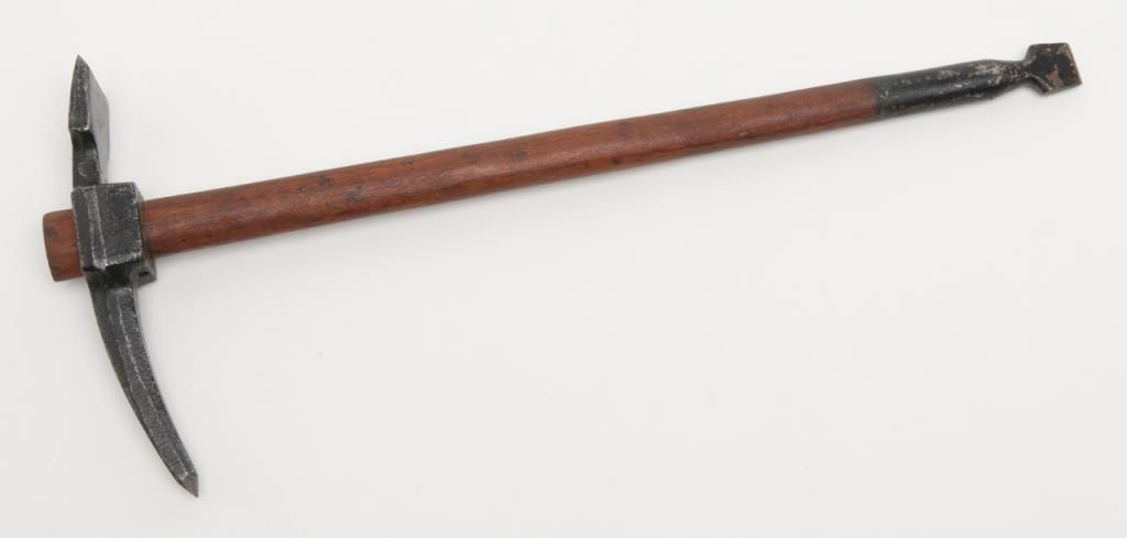 English civil defense pick ax of the type used during the blitz of London circa early 1940’s in very good condition. English volunteers used these type of pick axes to dig out victims after Nazi blitzes during England’s finest hours. Est.: $50-$100