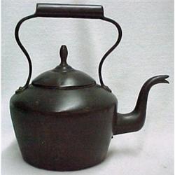 English copper tea kettle, copper bail handle , S-shaped spout, C.1830-40, approximately 14" high, Estimate 150/300