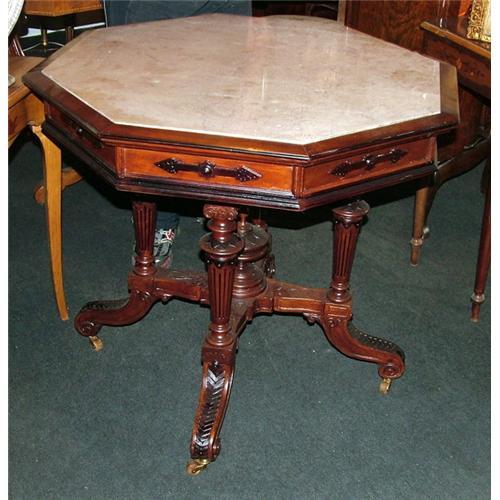 <tr><td>Title:English octagonal table carved walnut marble</td></tr>