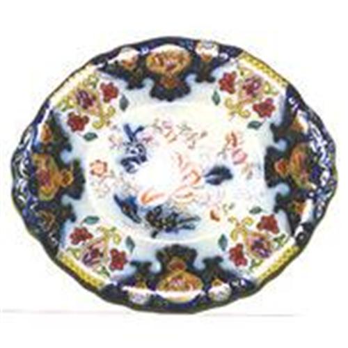 </font></strong>English oval footed serving dish, late 19th century. Beautiful palet of colors makes this a wonderful decorating plate. Approx. 10" long</font>