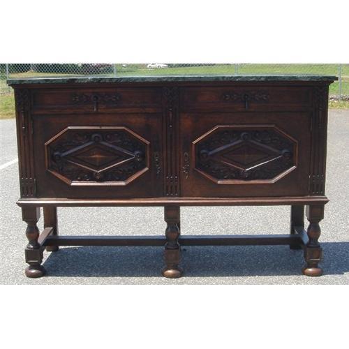 Notice the handsome Verde marble top and true patina. The traditional walnut stained wood and green marble top also allow for this piece to accomadate any room of exquisite taste!