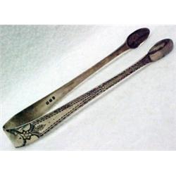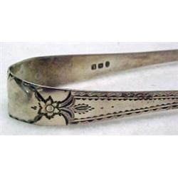 English silver sugar tongs, hallmarked, Samuel Hennell, London, 1806, 1.2 oz. Estimate 60/90