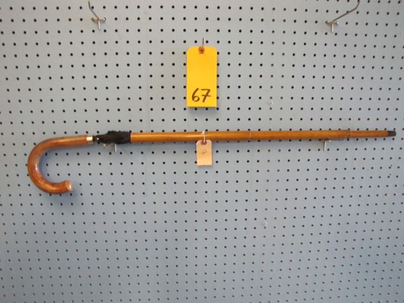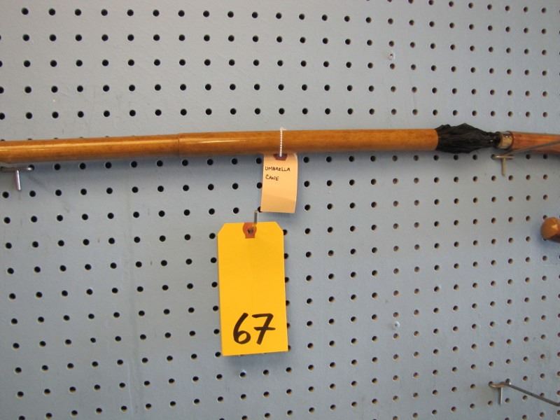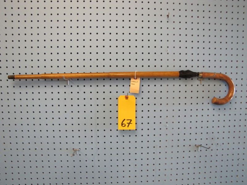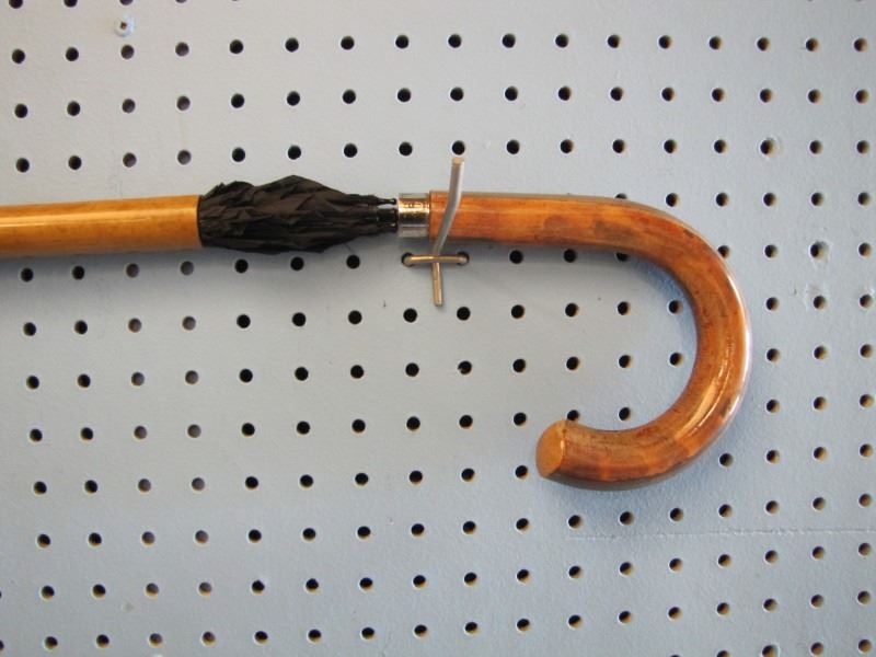 English umbrella cane - bamboo shaft - black umbrella- twist to open and turn to put umbrella back in shaft - Circa 1920