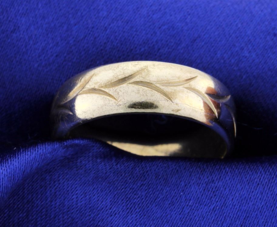 Engraved 14k white gold 7mm Band style ring. Size 10 1/2 6.6g