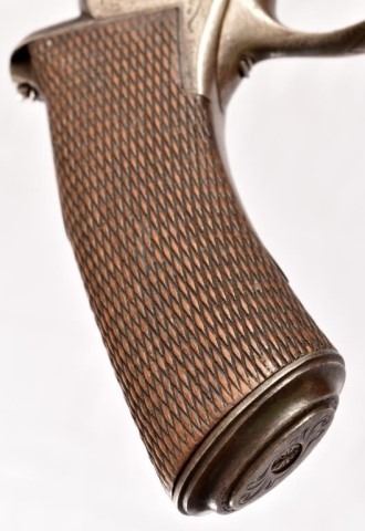 6" barrel, checkered wood grips. "E Berthod" scratched into frame. Very popular with Confederate officers, these were often brought in by blockade runners.
