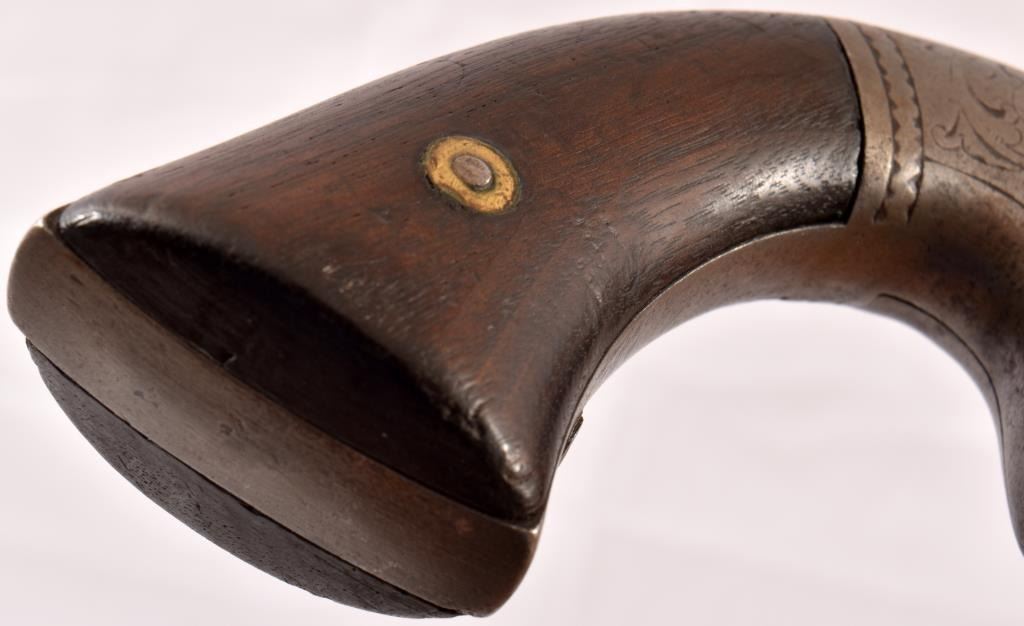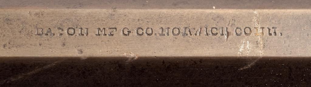 Engraved Bacon .38 rimfire Hopkins patent Navy revolver. 7.5" octagon barrel. Serial #139. Antique