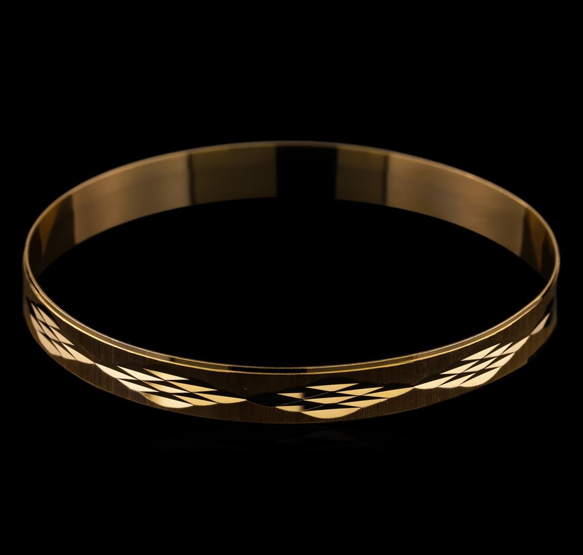 One engraved bangle bracelet featuring: 18KT yellow gold weighing 9.82 grams.