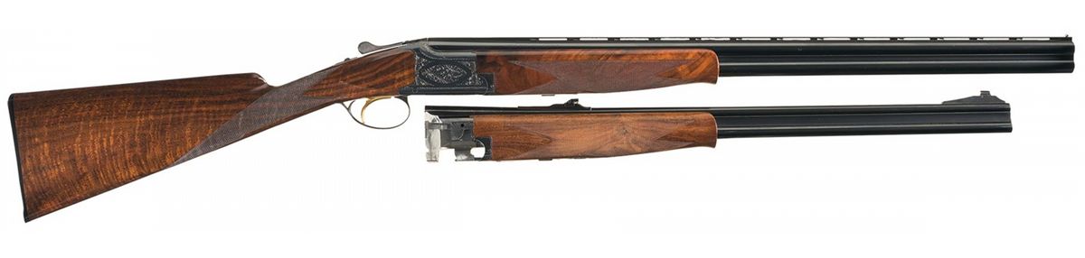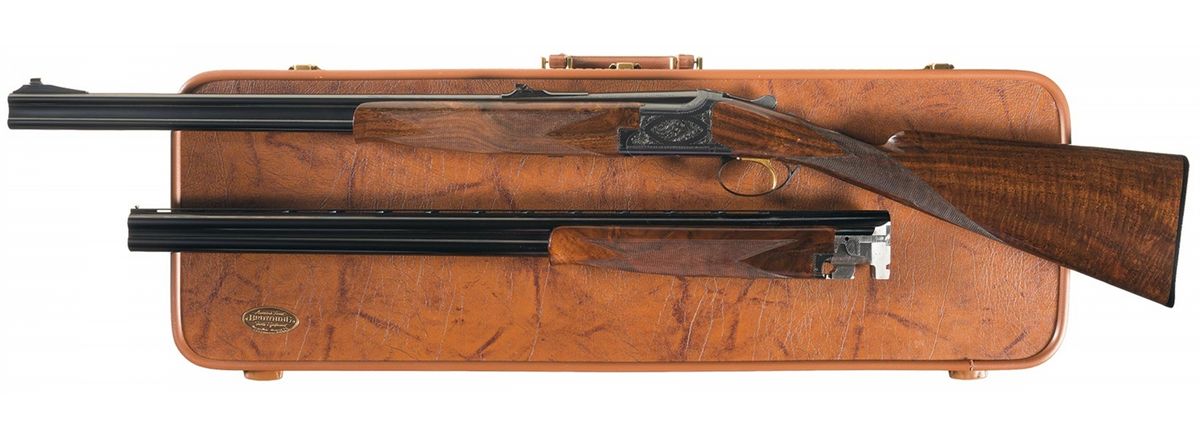 Engraved Belgium Browning Superposed Grade I Centennial Two Barrel Set Express Rifle and Shotgun