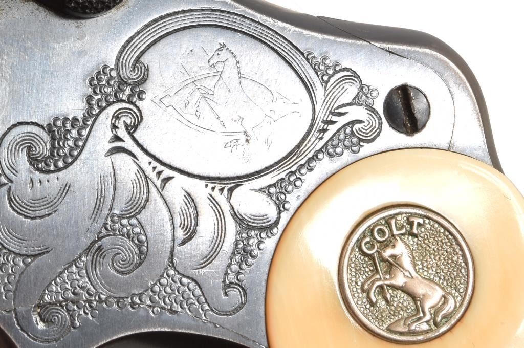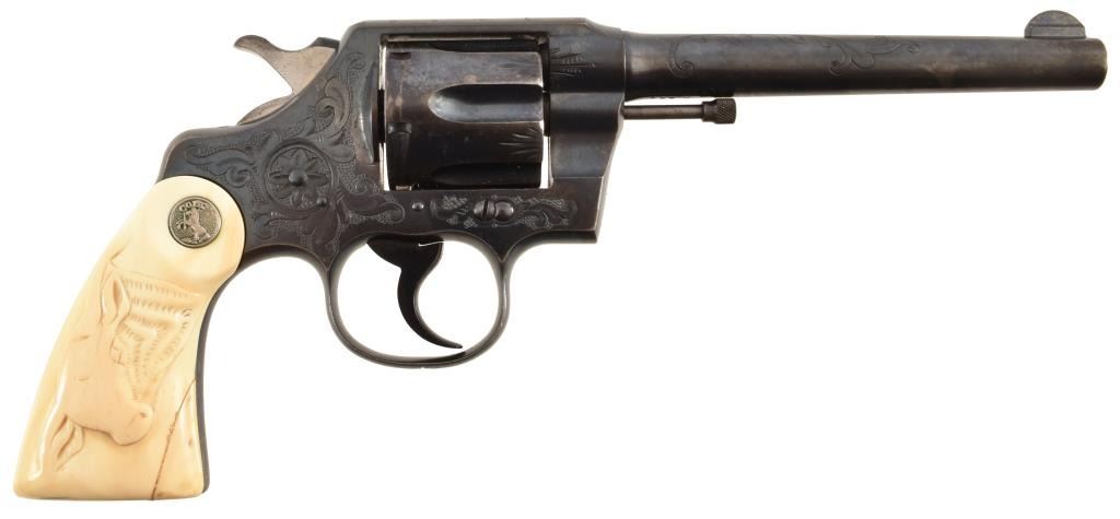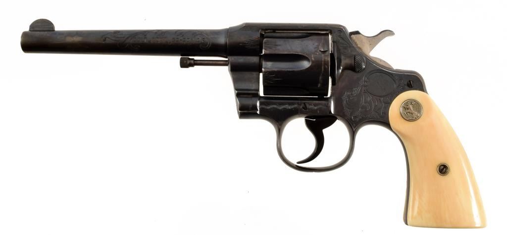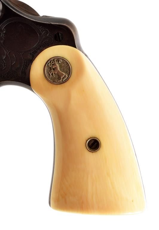 Factory engraved. Barrel 6". Manufactured 1912 Ivory grips with factory letter.