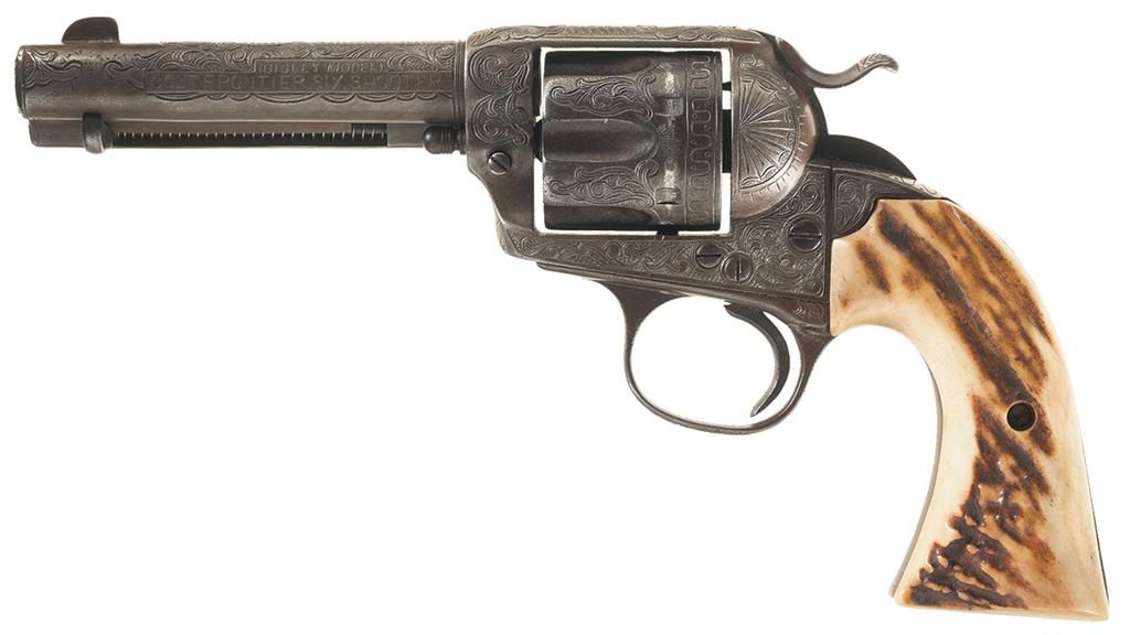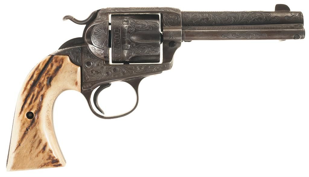 Engraved Colt Bisley Model Single Action Army Revolver with Stag Grips