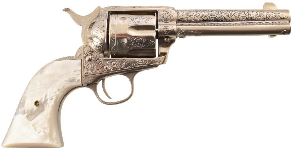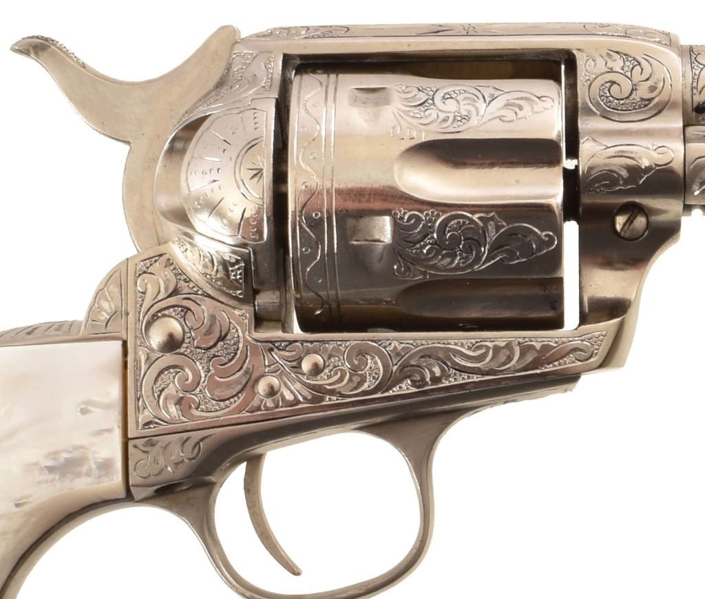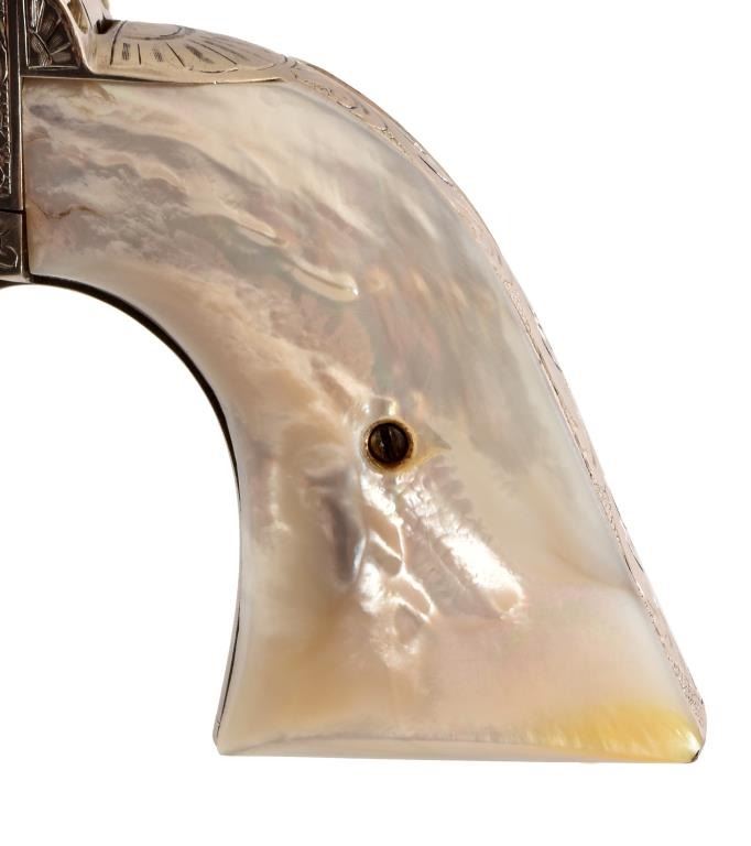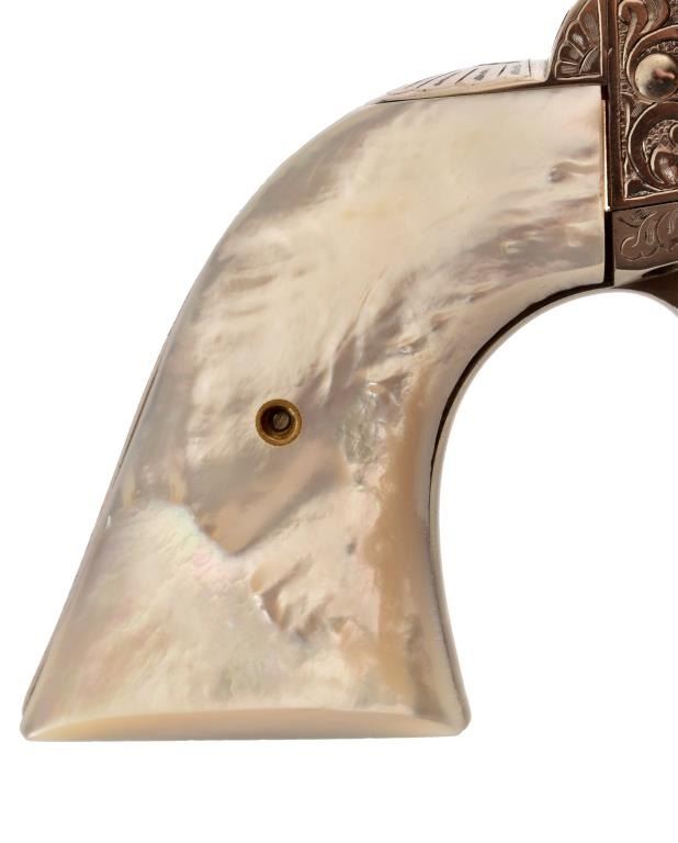 Barrel 5". David Wade Harris Engraved. Mother of pearl grips. Includes letter from engraver.