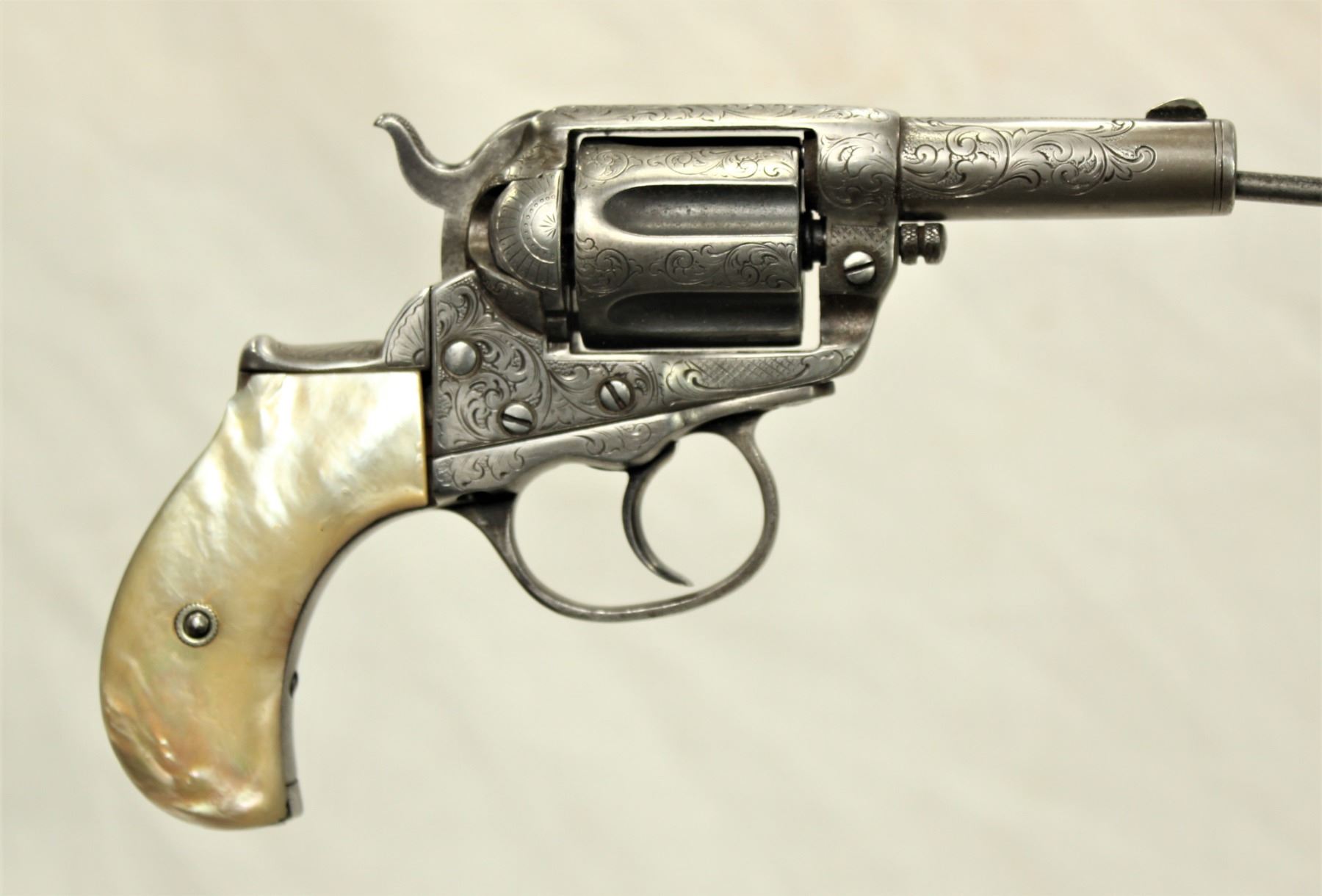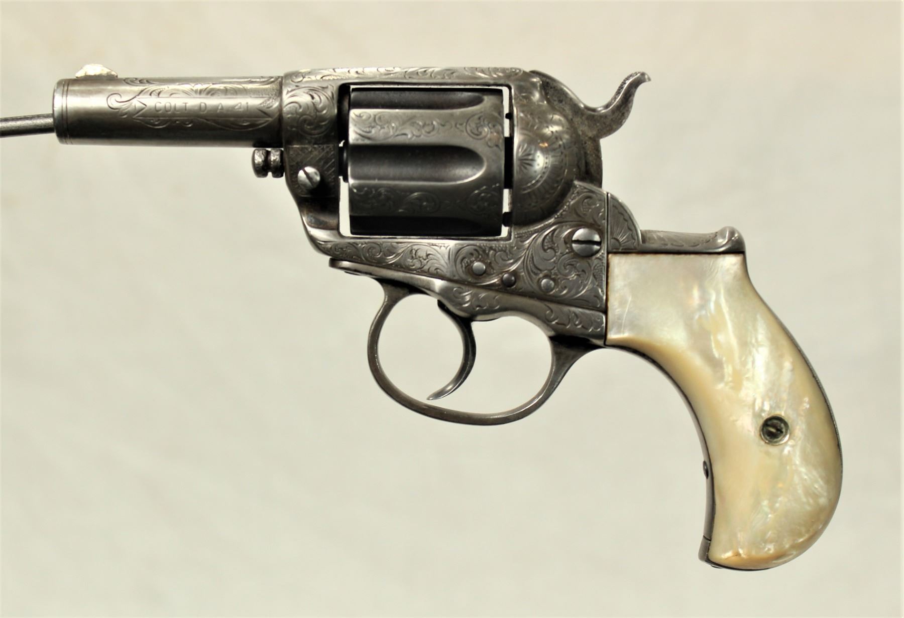 Colt Model 1877 Thunderer Double Action revolver with 3" barrel and chambered in 41 Colt. With beautiful period engraving and mother of pearl grips.